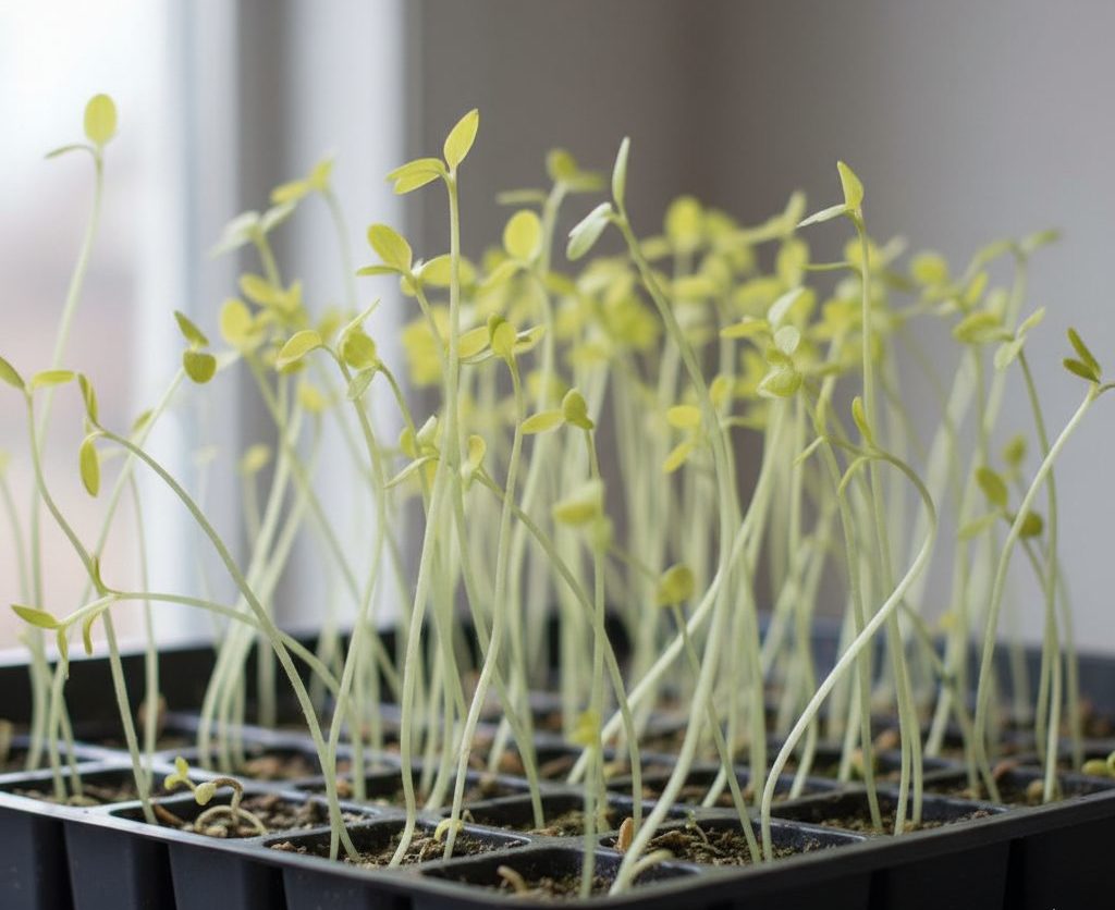 茎が細く長く伸びる(徒長)し、葉の色が薄く、収穫量も少ない。